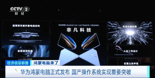 同一天,一款搭载鸿蒙系统的全新形态硬件产品——可折叠大屏幕笔记本电脑对外发布。