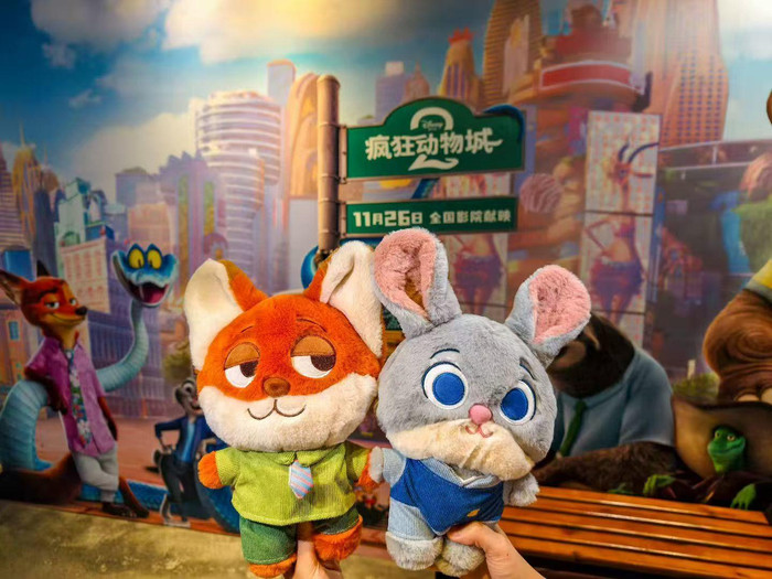 据悉,《疯狂动物城2》影院周边有兔朱迪、狐尼克等角色的毛绒玩具、定制爆米花桶和饮料杯等,价格从35元至280元不等。