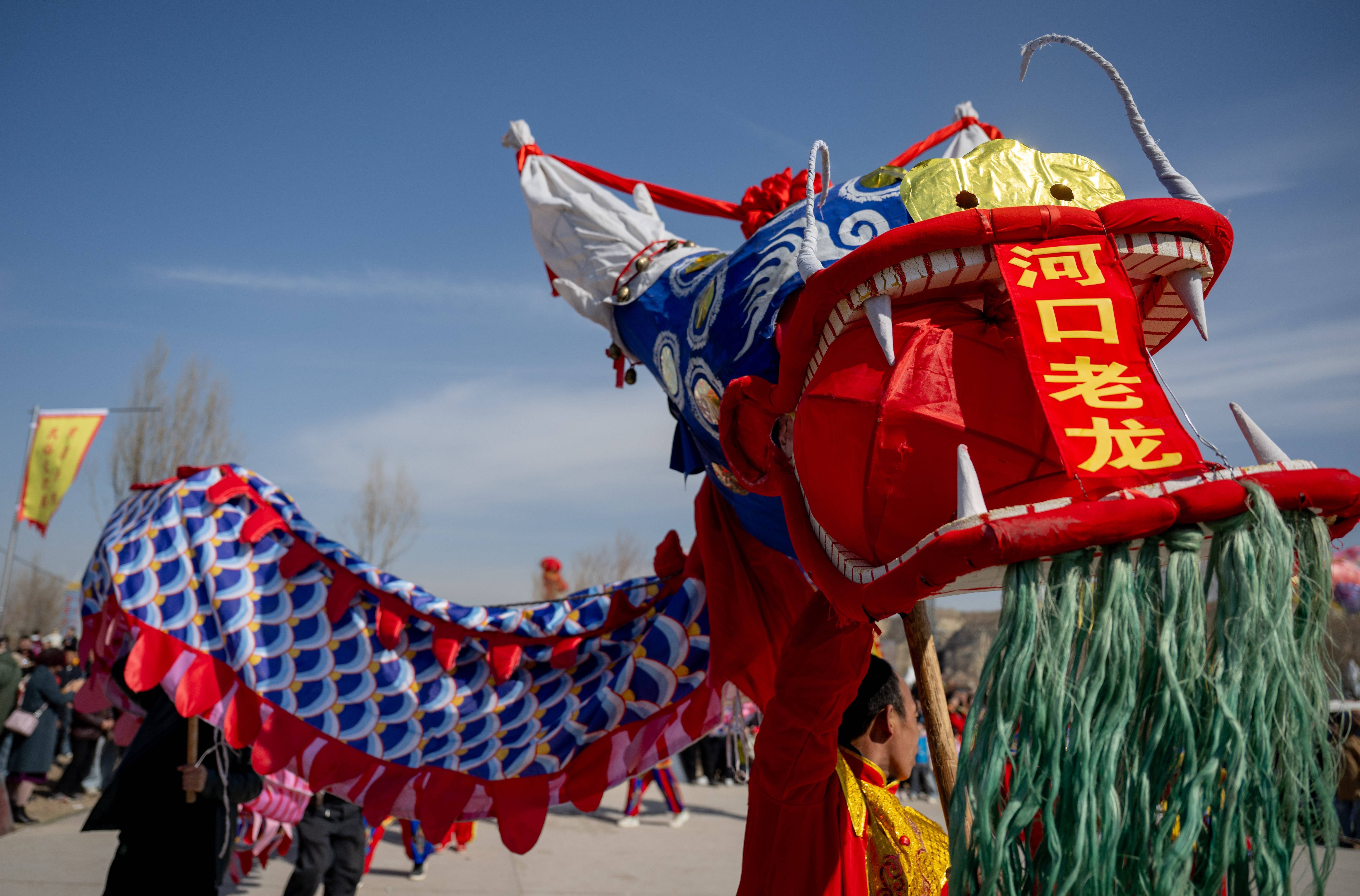 这是3月20日在呼和浩特黄河开河民俗文化周开幕式上拍摄的舞龙表演。新华社记者 连振 摄郝家窑村西数百米,黄河蜿蜒流过。宽广的河道内,水面波光粼粼,渔民李强摇着一叶红色小舟荡漾在水面上。“今天打上来十几条鱼,有鲤鱼、鲶鱼,还有鲫鱼。这时节的鱼肉干净鲜美,是母亲河独特的馈赠。”他说。